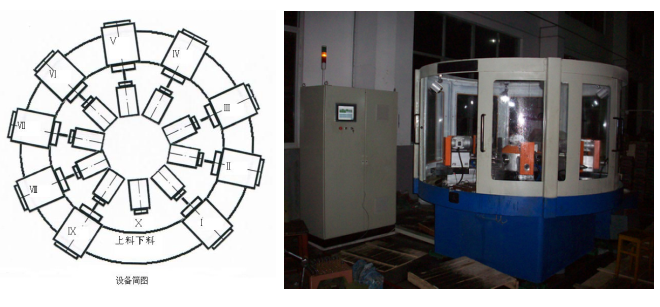 十工位噴油嘴數(shù)控鉆床主要用于噴油嘴針閥體偶件淬火前的粗加工工序,是通過(guò)一次裝夾,在一個(gè)幾何回轉(zhuǎn)中心上,通過(guò)工位的轉(zhuǎn)換,分別完成預(yù)鉆中心孔、中孔、平底、倒角、座面、大端面、壓力室等工序的加工、解決了傳統(tǒng)工藝在不同設(shè)備上分別加工中孔、座面、壓力室、大端面等因重復(fù)裝夾出現(xiàn)的質(zhì)量和合格率低的問(wèn)題;通過(guò)該機(jī)床加工后,充分保證后續(xù)加工余量均勻而少,為淬火后精加工提高生產(chǎn)效率,提高產(chǎn)品質(zhì)量,為柴油機(jī)排放達(dá)到歐Ⅳ標(biāo)準(zhǔn)奠定了基礎(chǔ),該機(jī)床分度機(jī)構(gòu)采用高精度梳齒盤(pán)回轉(zhuǎn)工作臺(tái),總體結(jié)構(gòu)設(shè)計(jì)合理,加工精度高;添補(bǔ)了國(guó)內(nèi)外空白。